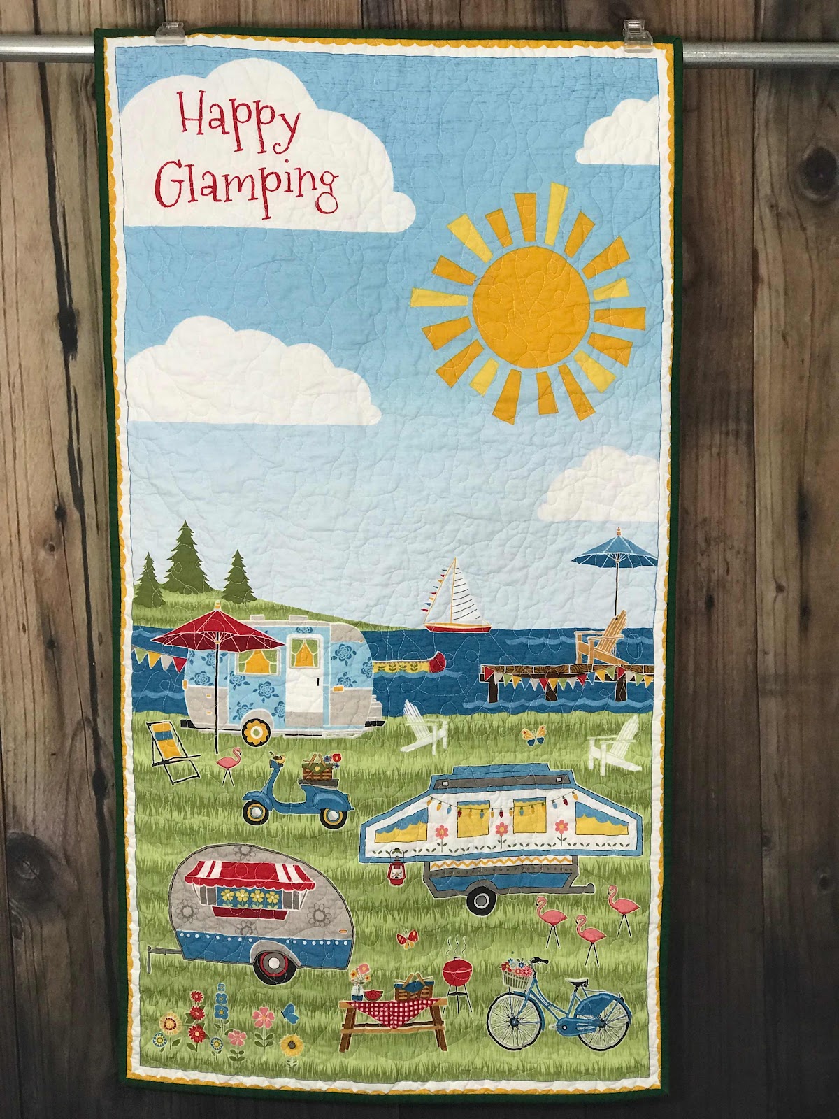So, of course they need quilty, sewy things for the trip. Like a little “glamping” mini-quilt that I quilted myself (one of the few - but growing - things I’ve machine quilted).
